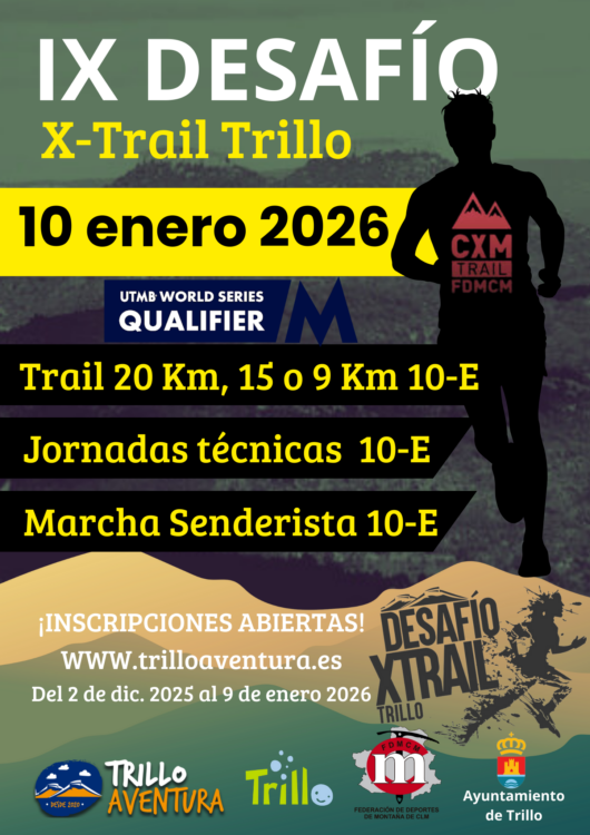 Otro año más, Desafío X-Trail Trillo será Evento UTMB WORLD SERIES y recibirán puntos UTMB todos los corredores que acaben el Trail de 20 Km y también es prueba oficial de carreras por montaña 2026 FDMCM